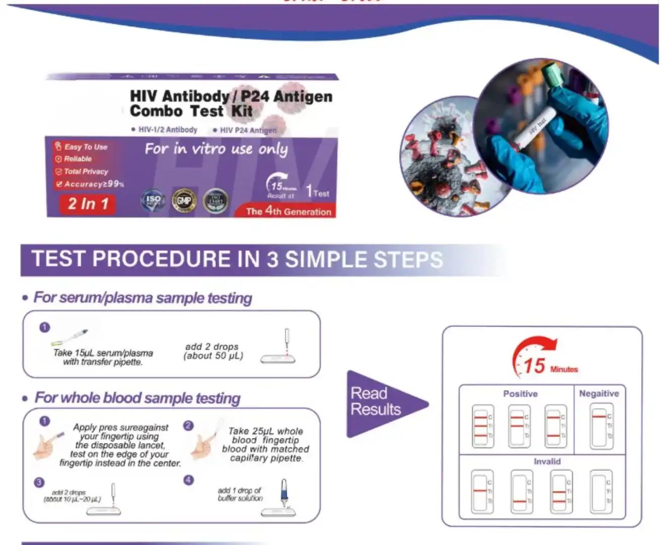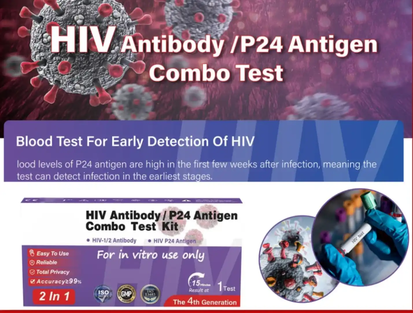 The HIV Ab/Ag P24 Test Kit (4th Generation) is a self-use screening product designed to identify both antibodies and the P24 antigen related to HIV. By combining dual detection markers, this 4th-generation format supports early and reliable screening with clear visual results. Best for Early detection.